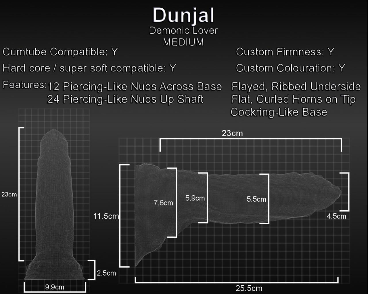 Here's the Dunjal, featuring a series of piercings along his bridge, and a uniquely freshly-flayed look along the belly of his tightly contained member. After all, what would a demon be without looking the part? Here he's seen in bright red, but he comes in all colours, including split and marble. If you'd like one of these options, please say so in buying notes or send us a message!