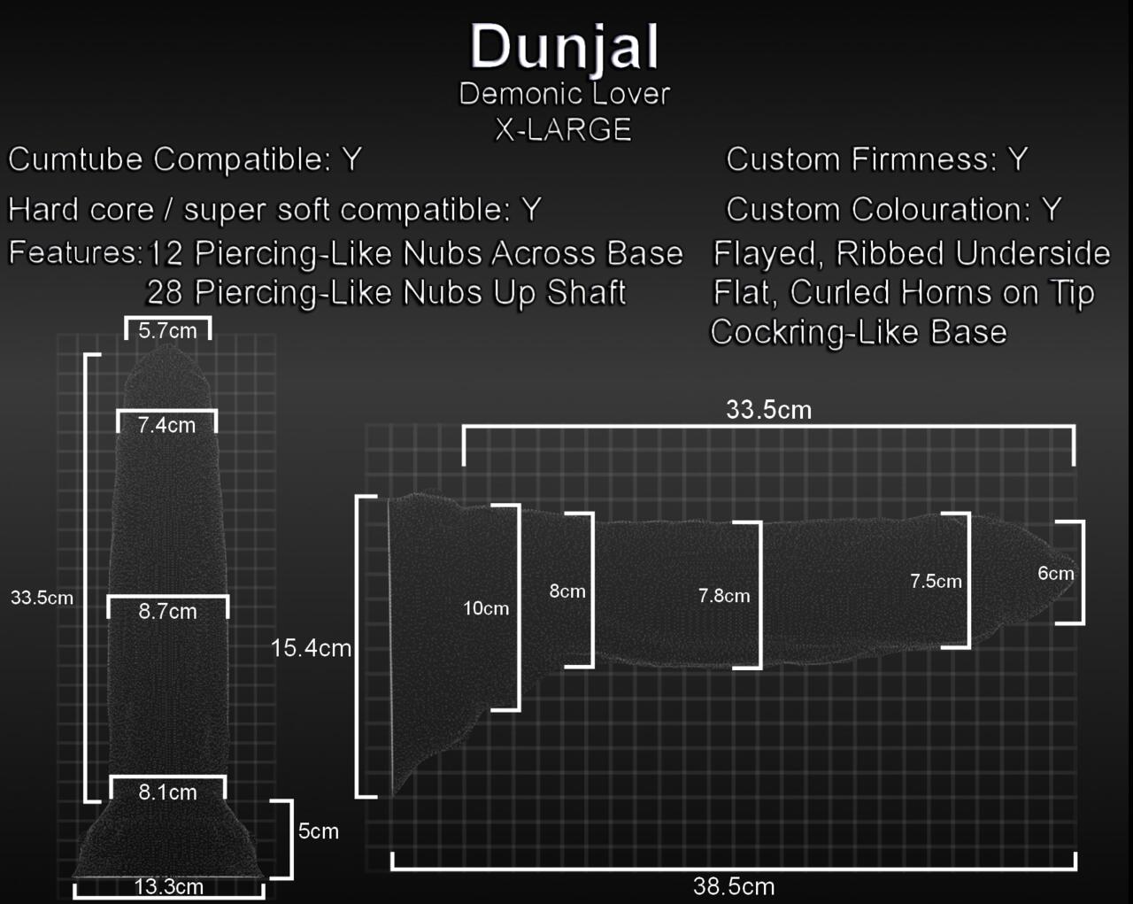 Some demonic forces can be dealt with thanks to a simple holy exorcism. Others, however, take something entirely within the realm of man to deal with; so is the case with the Extra Large Dunjal! This demonic pleasure-spawn comes fresh from the abyssal forges to test the mettle of any challenger ready to face their demise! This sexy slab of seduction is not one for newbies, and perhaps even the most experienced adventurer will find it difficult to overcome his demanding girth...