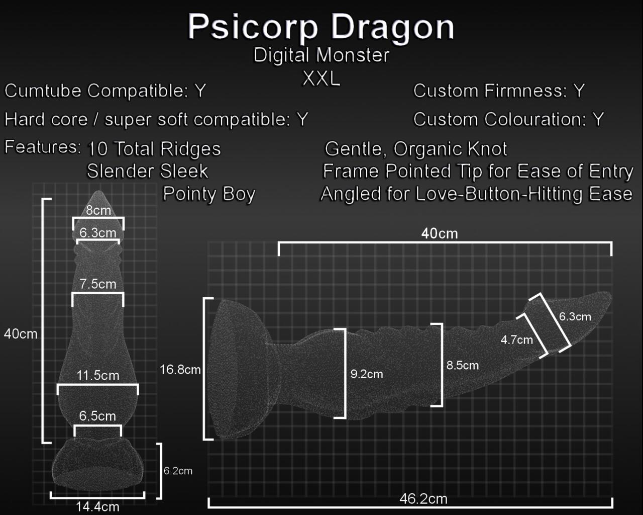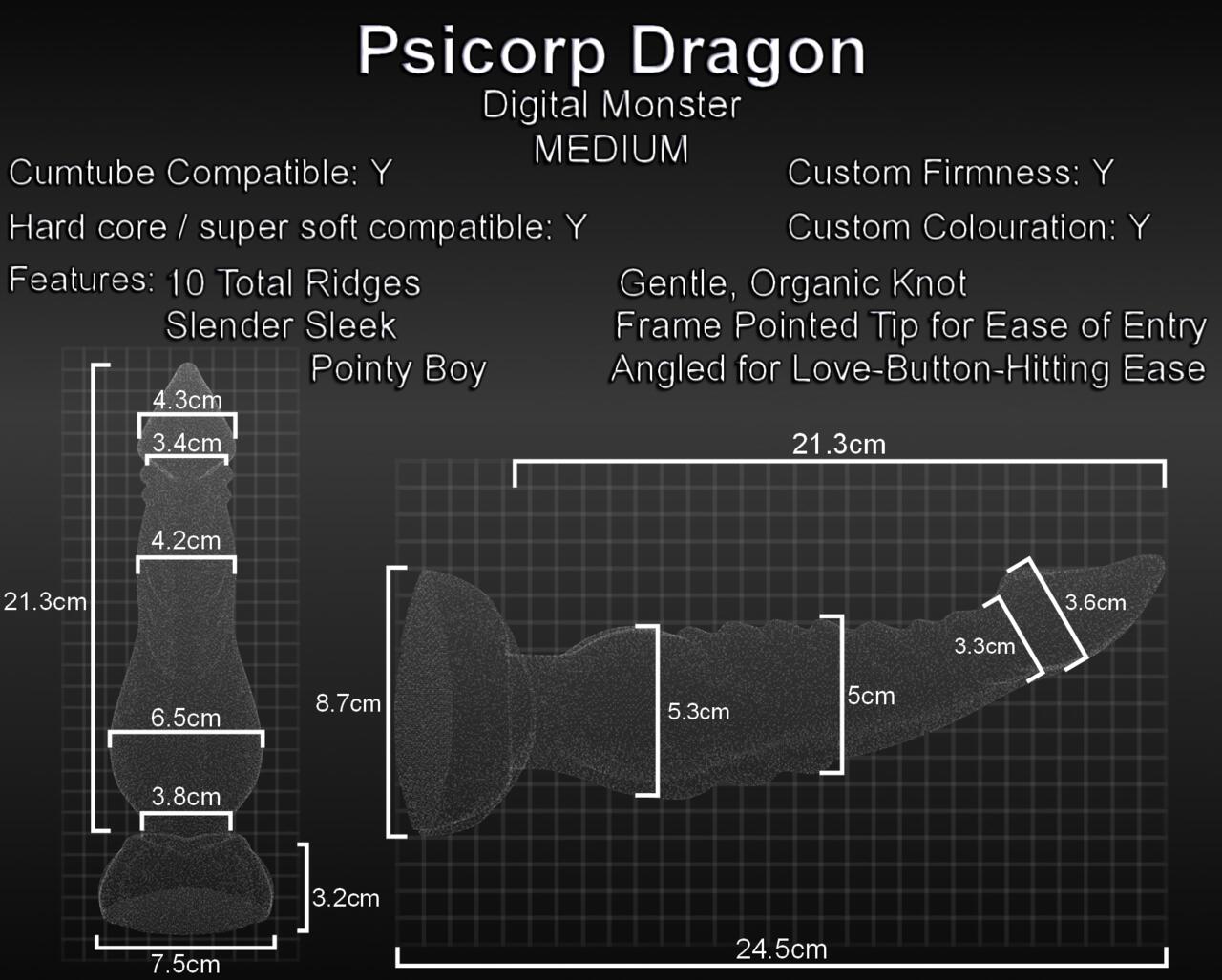 This toy was designed to mimic this fact, combining a sleek curve with bumps and ridges, providing clearly felt stimulation to anyone daring to try it out. Its base widens, almost to a knot-like structure, smoothly growing ever thicker until one crests the final rise, feeling the draconic shape softly lock within, holding on snugly.