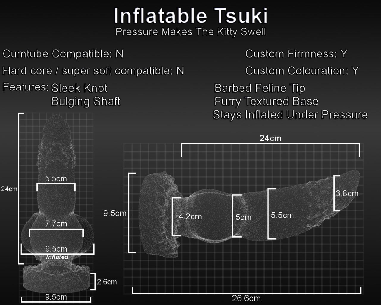 Introducing Tsuki, the newest addition to our line of toys! As a cross between vulpine and feline, this toy presents not only a series of pronounced barbs, but also a rather sizable knot which makes his partners squeal with delight. As a total premiere for Akifu Toys, we're proud to announce that we are able to deliver this toy to you with an inflatable knot, making sure that once it's in, it won't come out until you're ready.